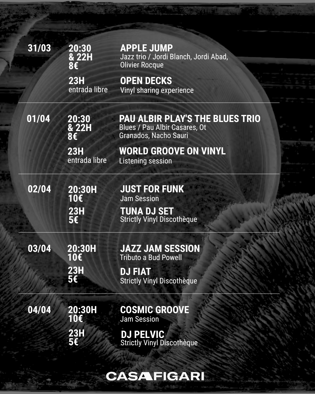 Conciertos de jazz, jam sessions, vinilos y Discothèque.